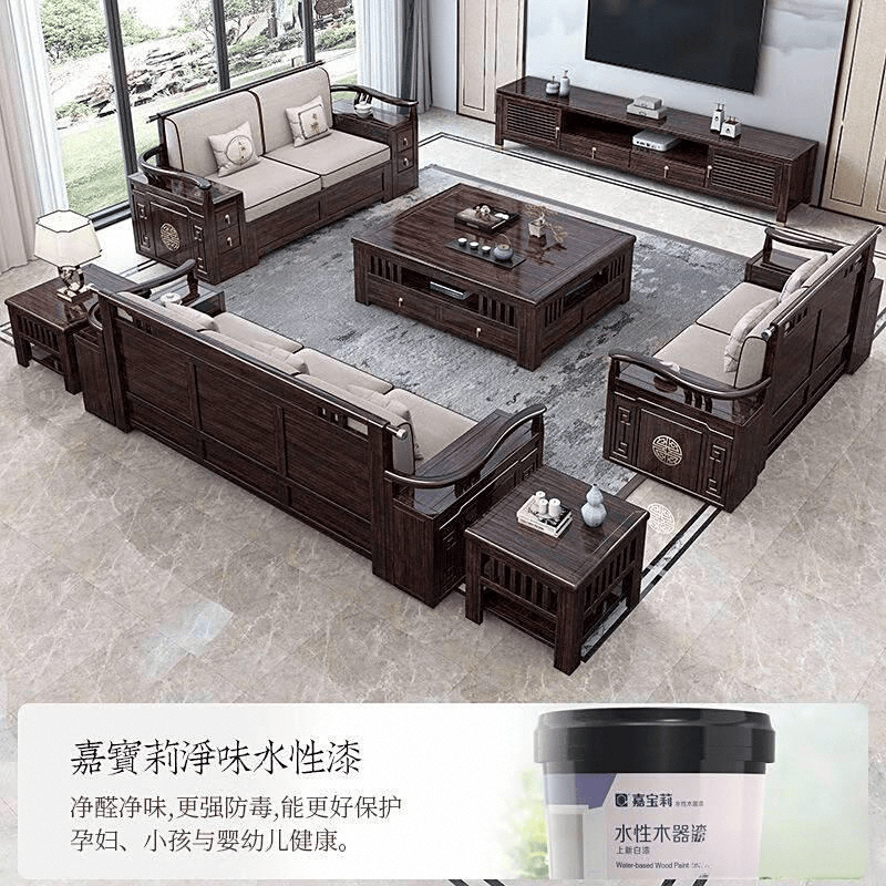 沙发表面刷的是净味水性漆,无气味,无刺激性,环保又健康。就像婴儿用的油漆一样安全,让人放心使用。