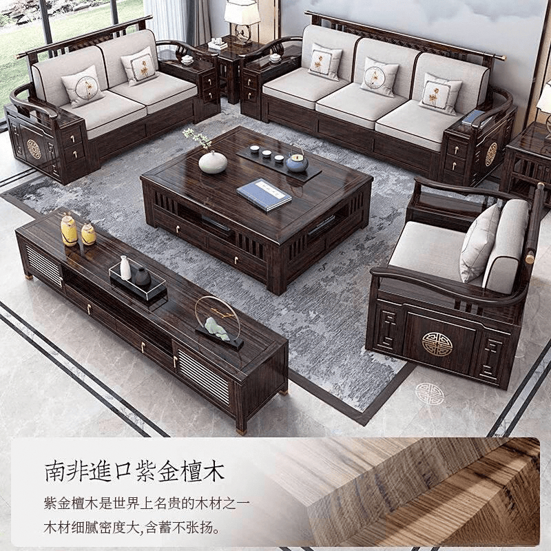 我们的帝虹紫金檀木沙发,选用的是紫金檀木,价格在≈10000元/m3,这可不是闹着玩的哦!这样的材质,让沙发看起来高端大气,摸起来舒适细腻,耐用度也杠杠的。