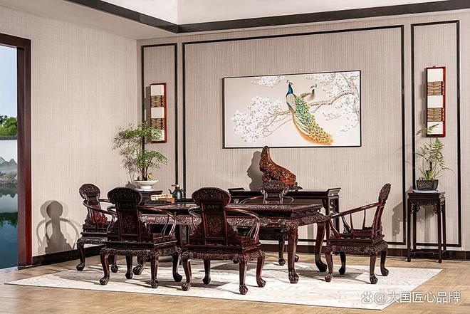 泰和园主打红木家具 “私人定制”,用 “丝翎檀雕” 技法,《梅兰竹菊》系列紫檀家具精选木料,兼具艺术性与生命力,受高品位消费者青睐。