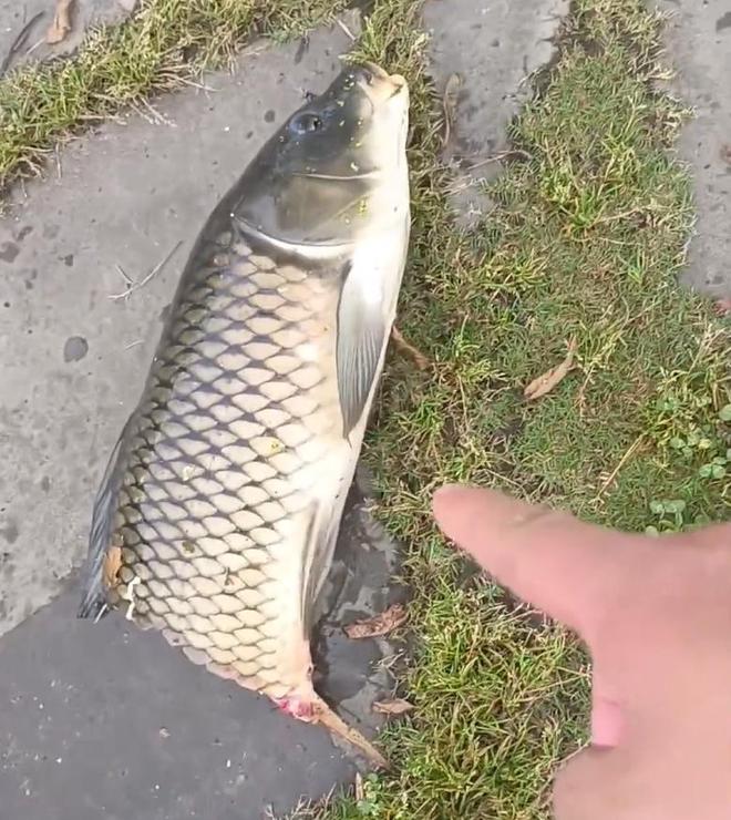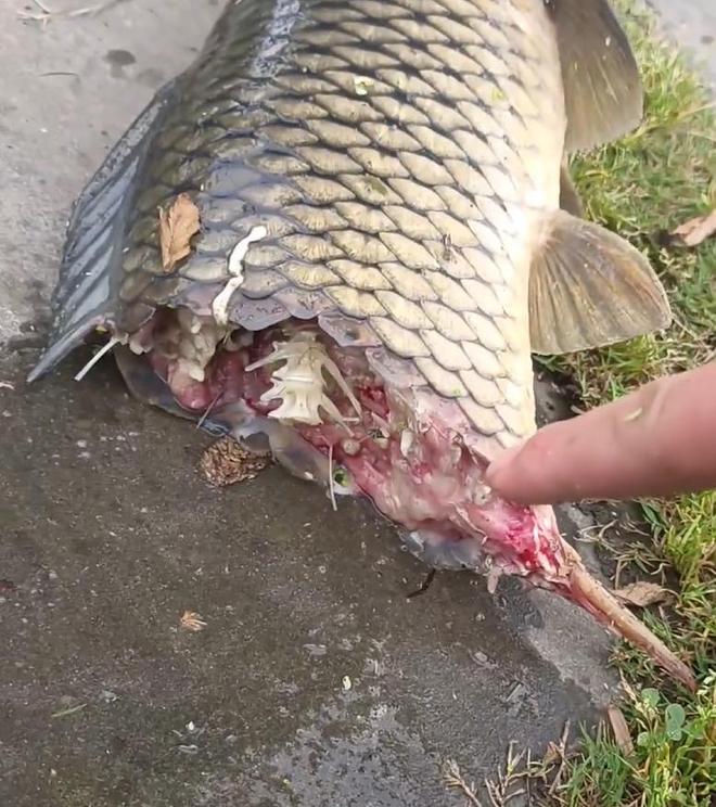 随后他用抄网将这条10多斤的草鱼给捞了上来,看着这条草鱼身体断裂处的伤痕,像极了某种生物撕咬后留下的。