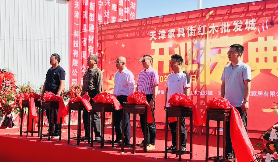 致辞环节结束后,几位领导、嘉宾再次登上舞台,共同为天津家具街红木批发城(航美之家红木批发城)剪彩,在礼炮轰鸣、欢歌笑语和众人的掌声中,完成了精彩的、令人难忘的开业剪彩仪式!