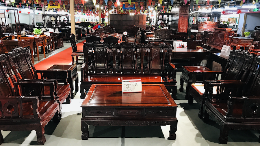 其中,红木家具用料主要包括:东非本色、南美酸枝、中美洲酸枝、东浦寨酸枝、缅花、梨花、刺猬紫檀等数十种名贵木材;红木家具产品的款式有数百种之多。